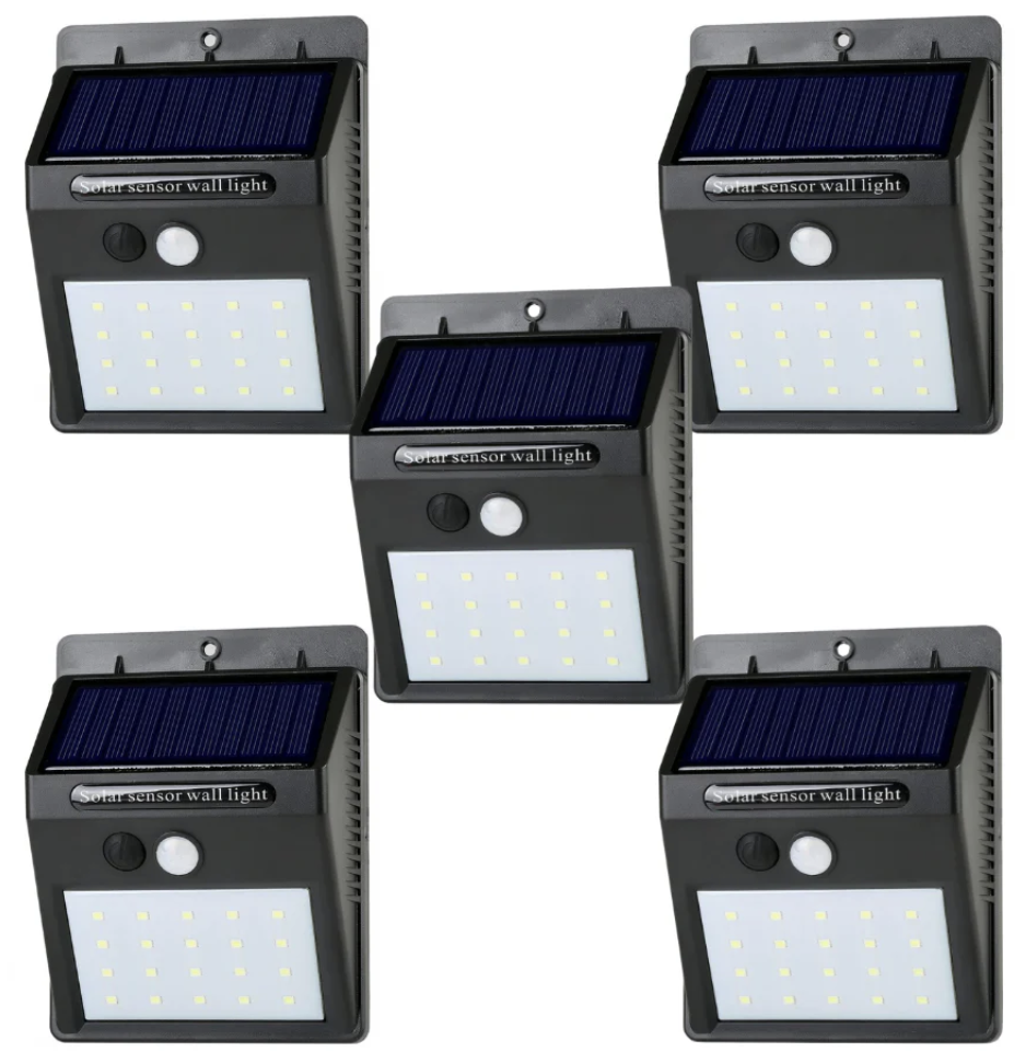 5 focos solares de 20 led