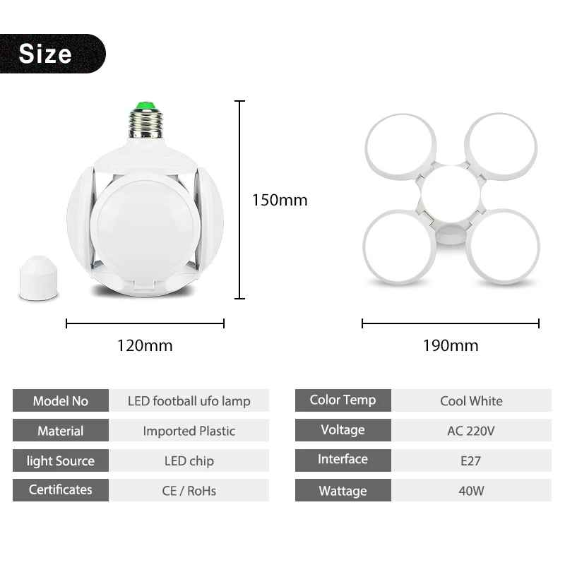 Mejora la visibilidad y el rendimiento energético con la Bombilla LED UFO Plegable de 45W, diseñada para ofrecer máxima eficiencia y durabilidad.