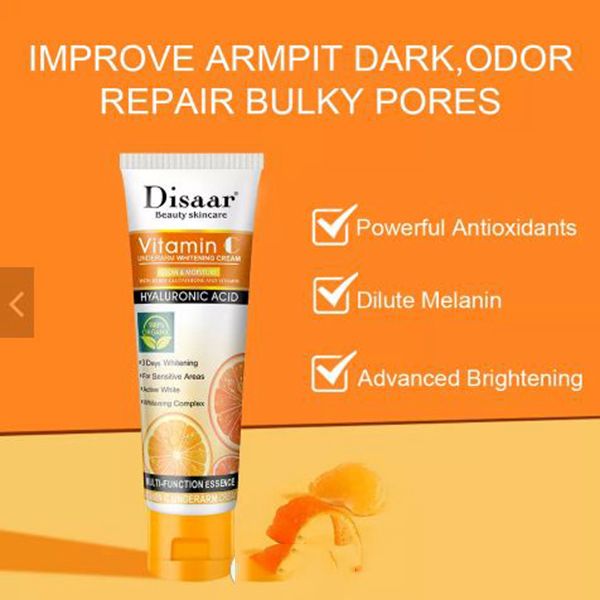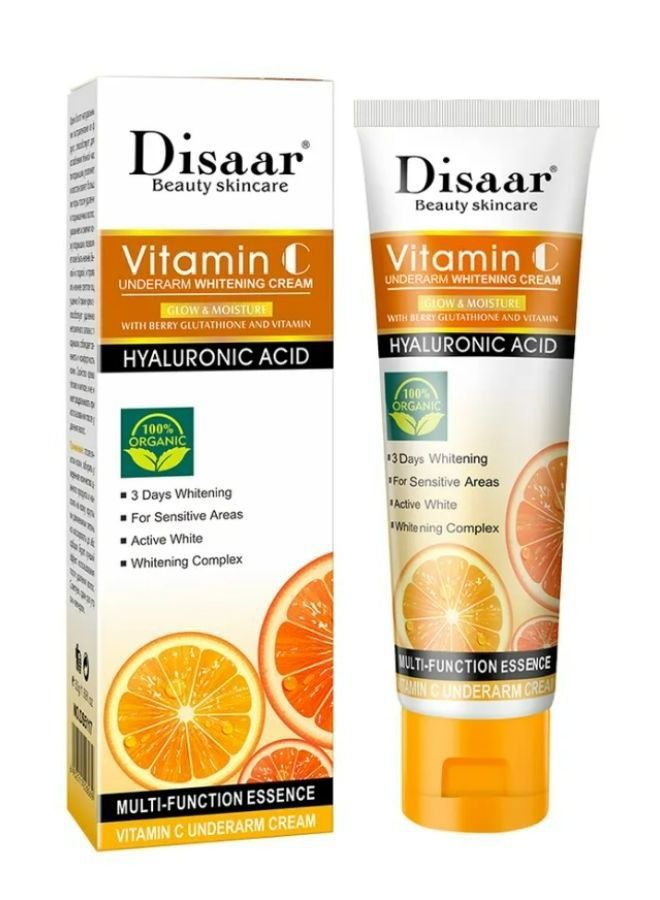 La crema iluminadora para axilas Disaar con Vitamina C está formulada con vitamina C, ácido hialurónico y glutatión, ayudando a mejorar el tono de la piel en zonas sensibles. Su fórmula hidrata profundamente, suaviza la piel y contribuye a una apariencia más uniforme y luminosa.
