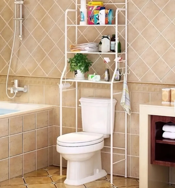 Además de acomodar artículos de baño, esta unidad también puede servir como estante de lavabo o soporte de lavadora.