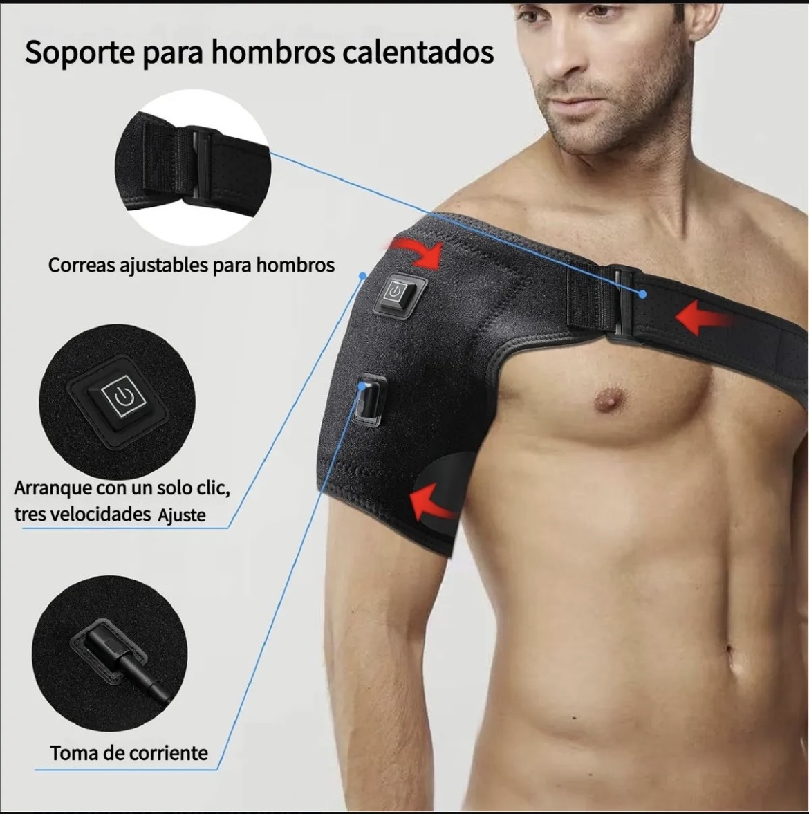 Hombrera de soporte -Usala en cualquier actividad como soporte para tus hombros-Terapia de calor-Fabricada en neopreno transpirable de primera calidad sea ajusta cualquier medida gracias a que incluye un fabuloso extensor*PUEDES USARLA EN AMBOS HOMBROS solo cambia que el botón y el conector quedara atras Tres intensidades de calor:-Bajo-Medio-Alto