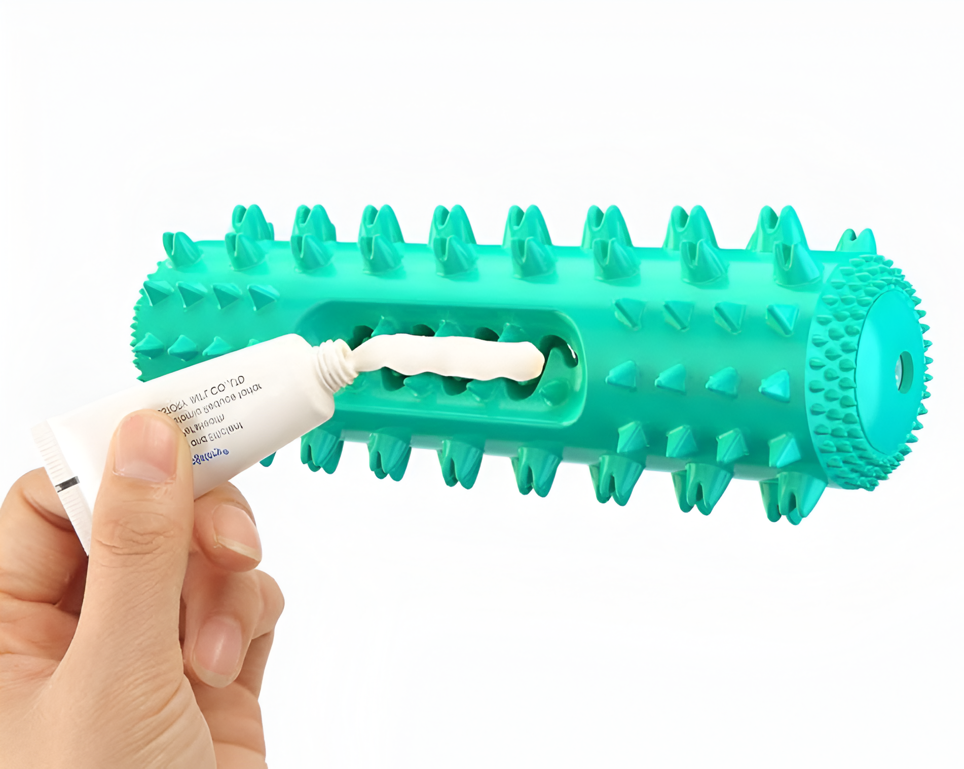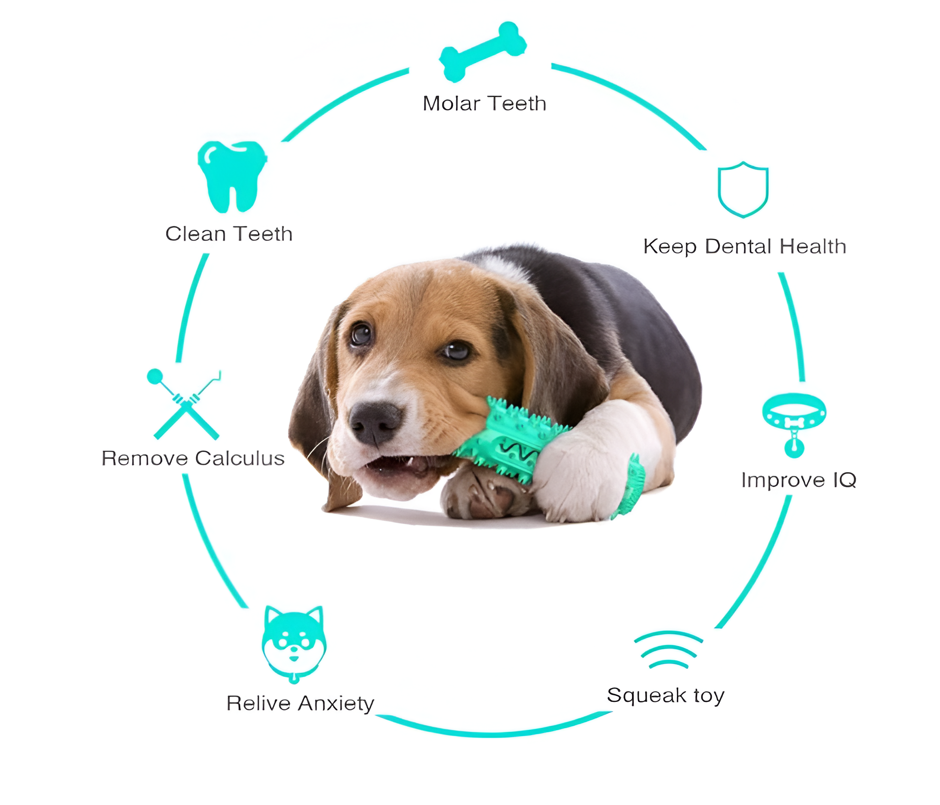 Juguete para perro con cepillo de dientes diseñado como una herramienta para limpiar y refrescar los dientes de tu perro por sí mismo. El cepillo de dientes para perros es lo suficientemente suave como para evitar daños en las encías del perro, y puede ayudarles a limpiar los dientes y protegerlos de enfermedades orales.