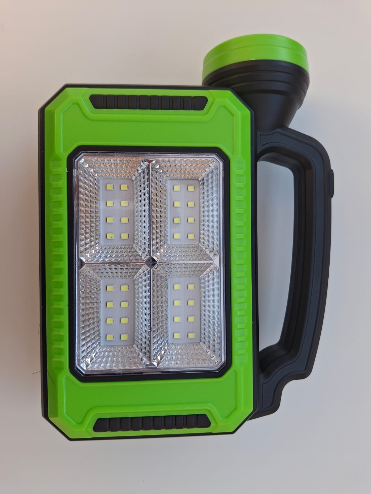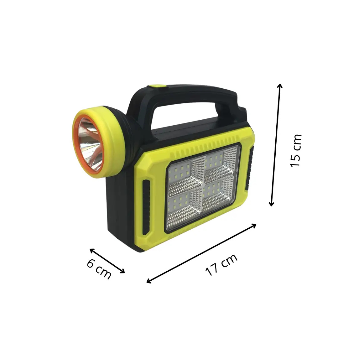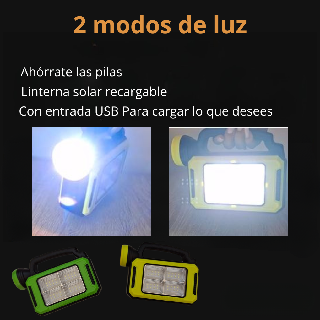 💡 Esta linterna está diseñada para acompañarte en todo momento: ya sea en campamentos, viajes, actividades al aire libre o emergencias en casa. Su tecnología LED ultra potente ilumina grandes espacios con facilidad, y lo mejor es que puedes recargarla con energía solar o mediante USB.