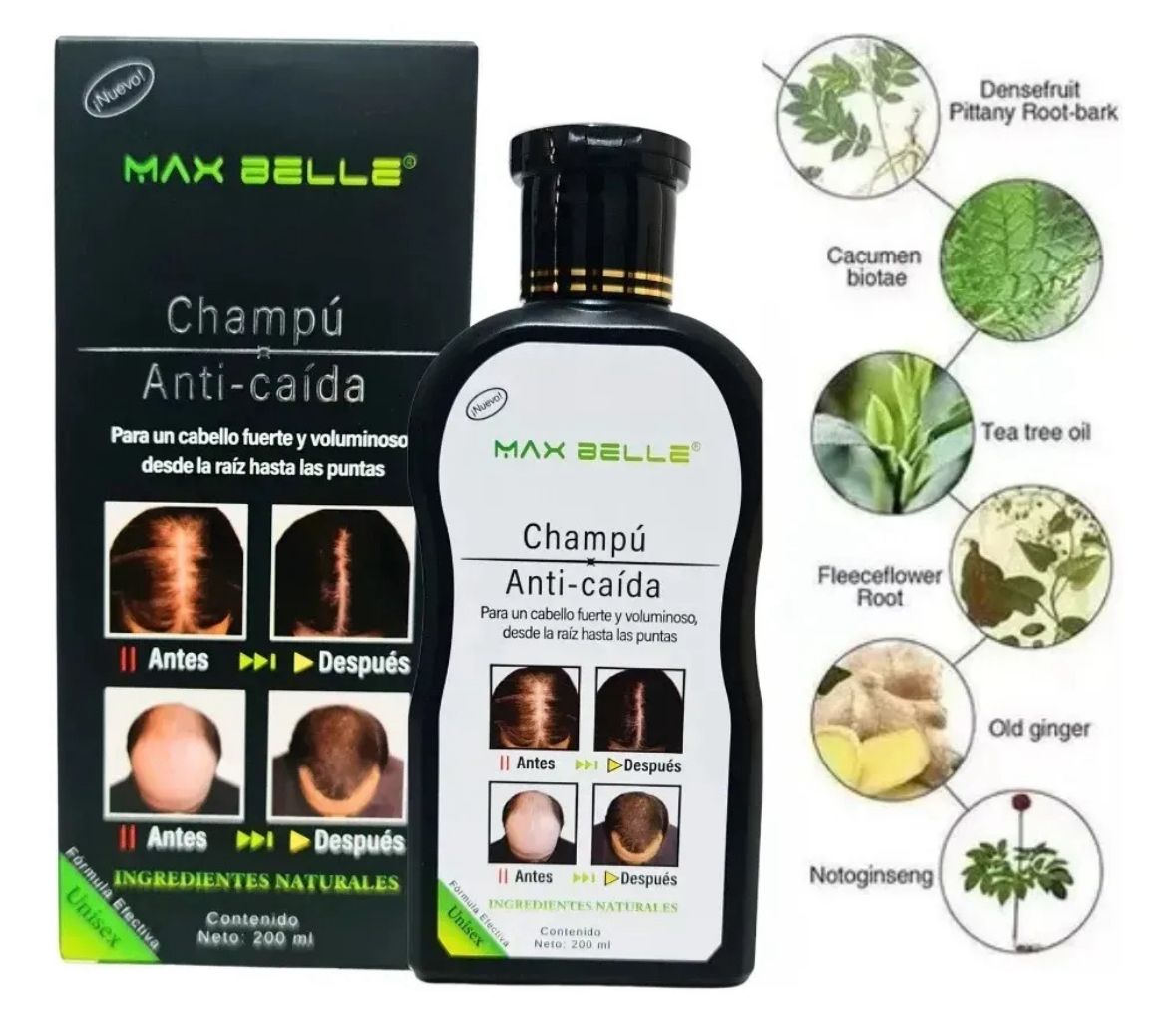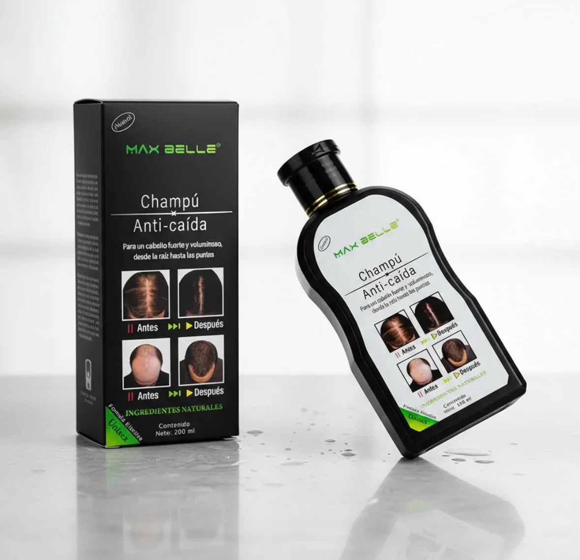 El Champú Anticaída MAX BELLE está especialmente formulado para personas con caída del cabello o debilitamiento capilar. Enriquecido con ingredientes naturales, limpia profundamente el cuero cabelludo mientras nutre y fortalece el cabello desde la raíz hasta las puntas.