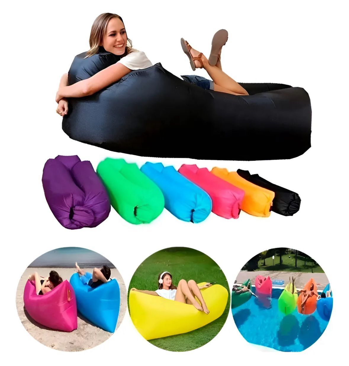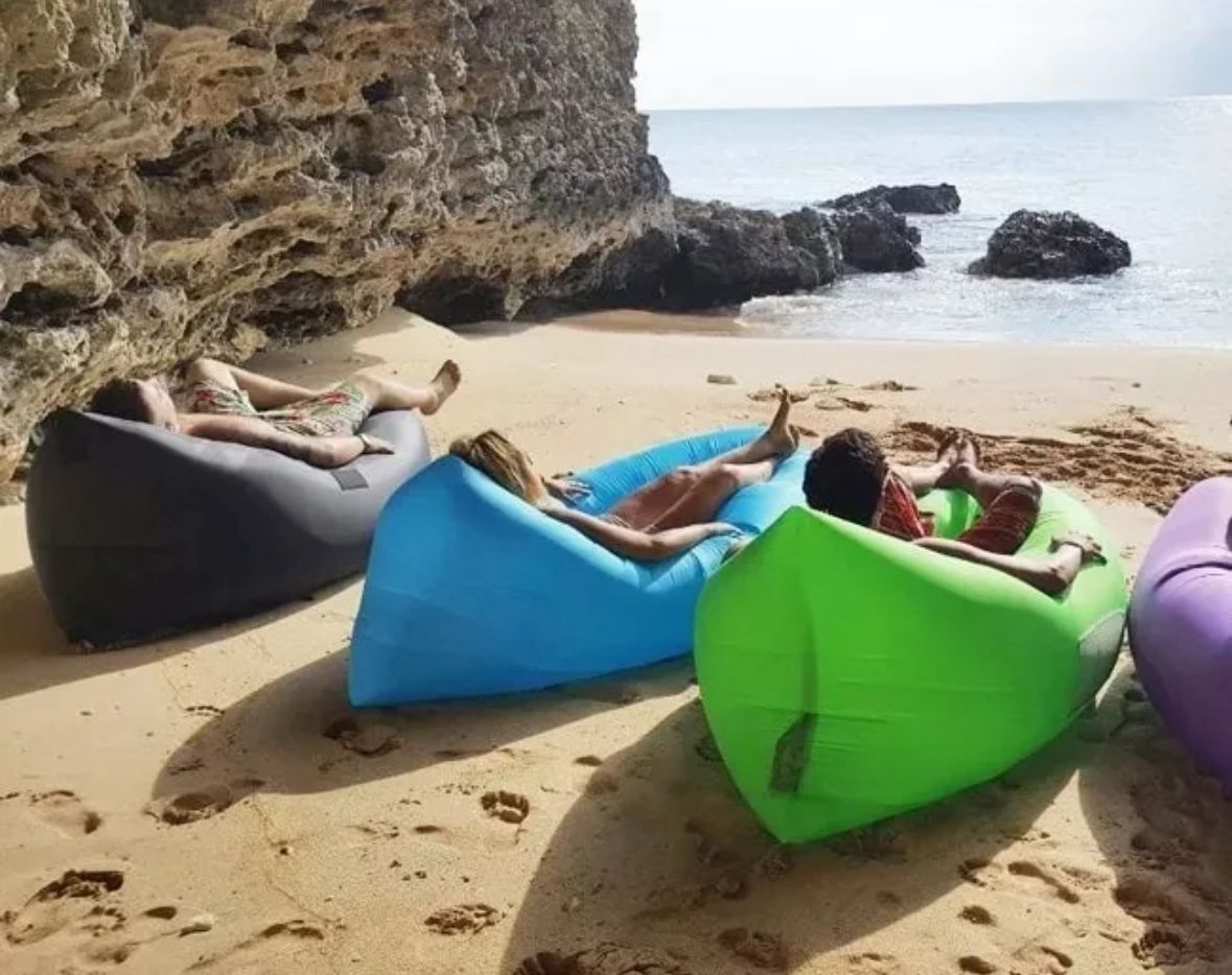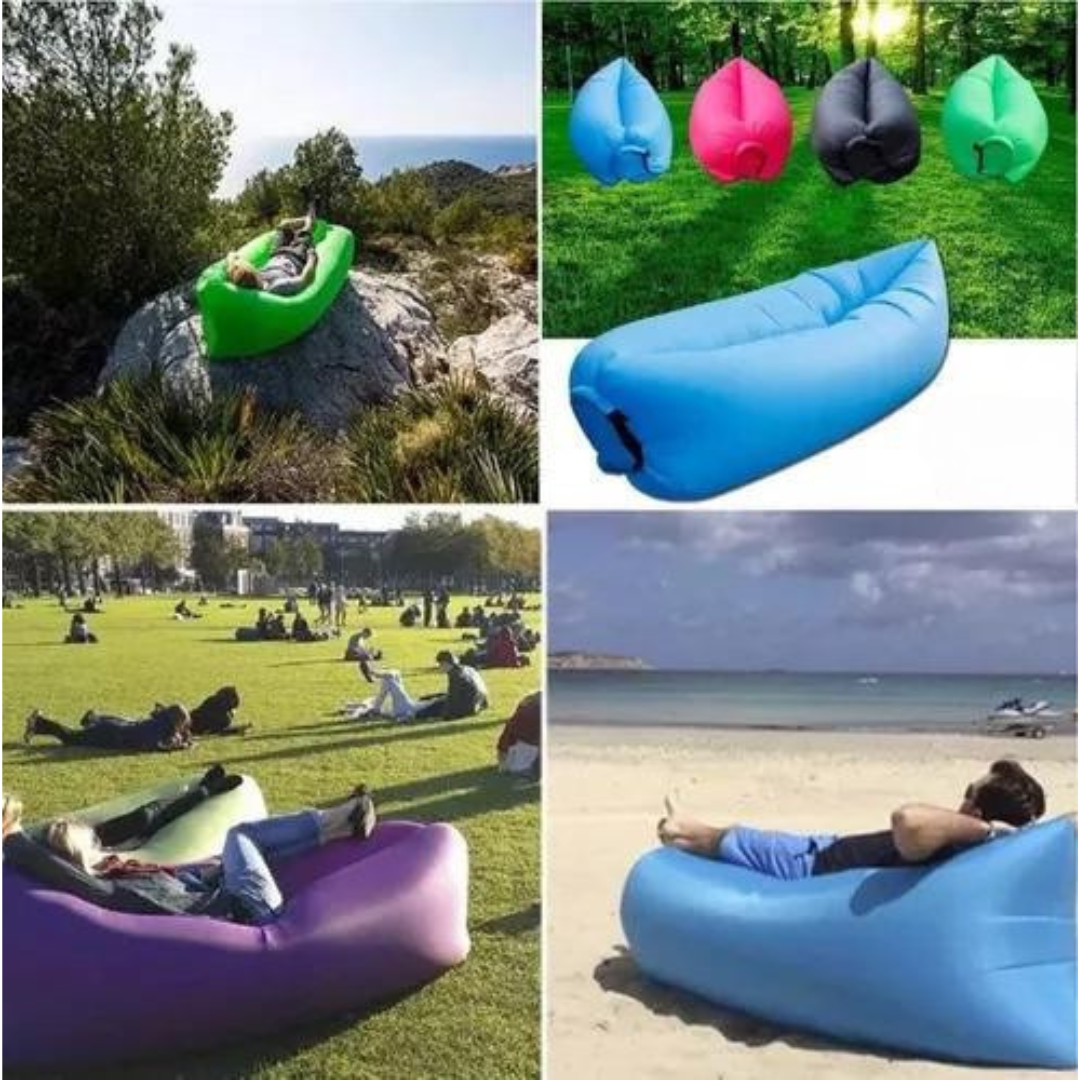 Disfruta del descanso en cualquier lugar con este sofá inflable portátil, ideal para playa, piscina, camping, parque o jardín.