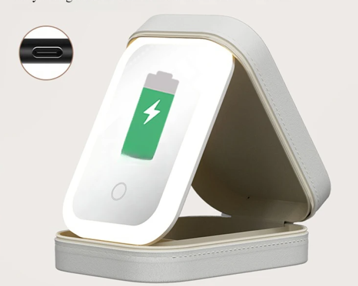 Nuestro estuche de maquillaje con luz LED con un espejo de brillo adaptable de 3 niveles le permite aplicar el maquillaje perfectamente en cualquier entorno. Encuentre su iluminación perfecta y eleve su rutina de belleza con facilidad.