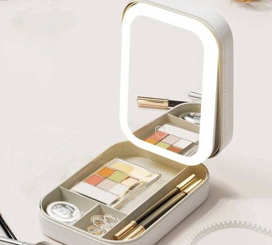 Gestione sin esfuerzo su colección de maquillaje con nuestro Estuche de maquillaje con luz LED, que ofrece una gran capacidad de almacenamiento y un diseño dividido.