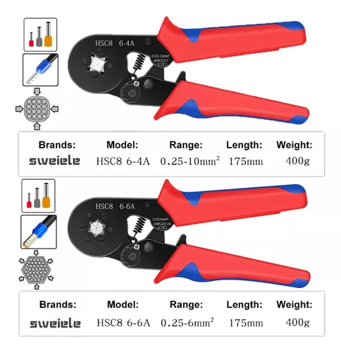 * 1x HSC8 6-4A Herramienta de crimpeado para terminales AWG 23-7 de 0,25-10 mm2