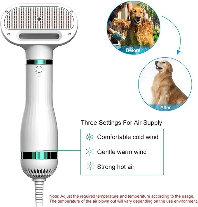 . Puede ajustar la fuerza del secador. Puede ajustar la fuerza del viento de acuerdo a la talla de la mascota y secar y peinar rápidamente.