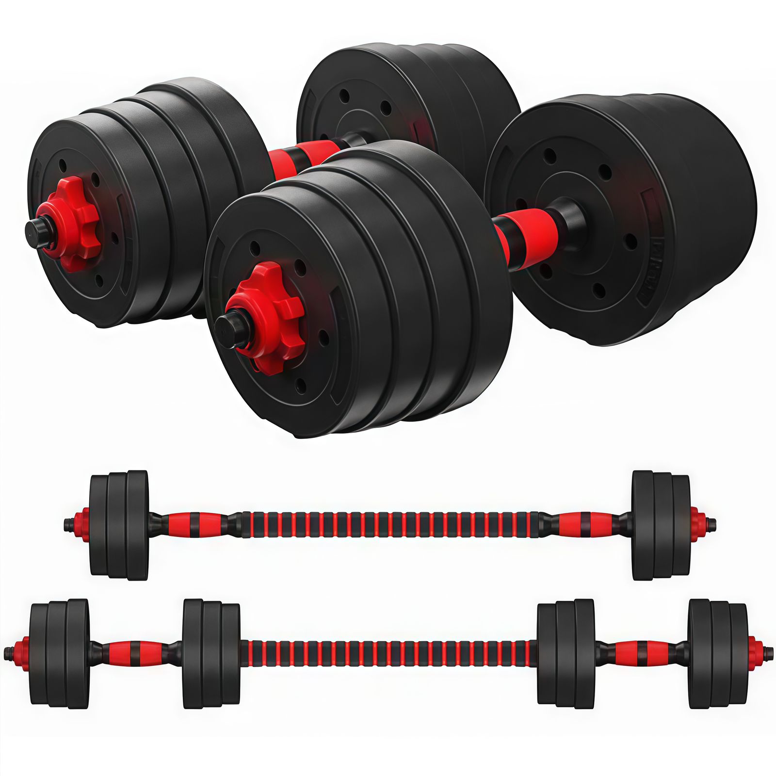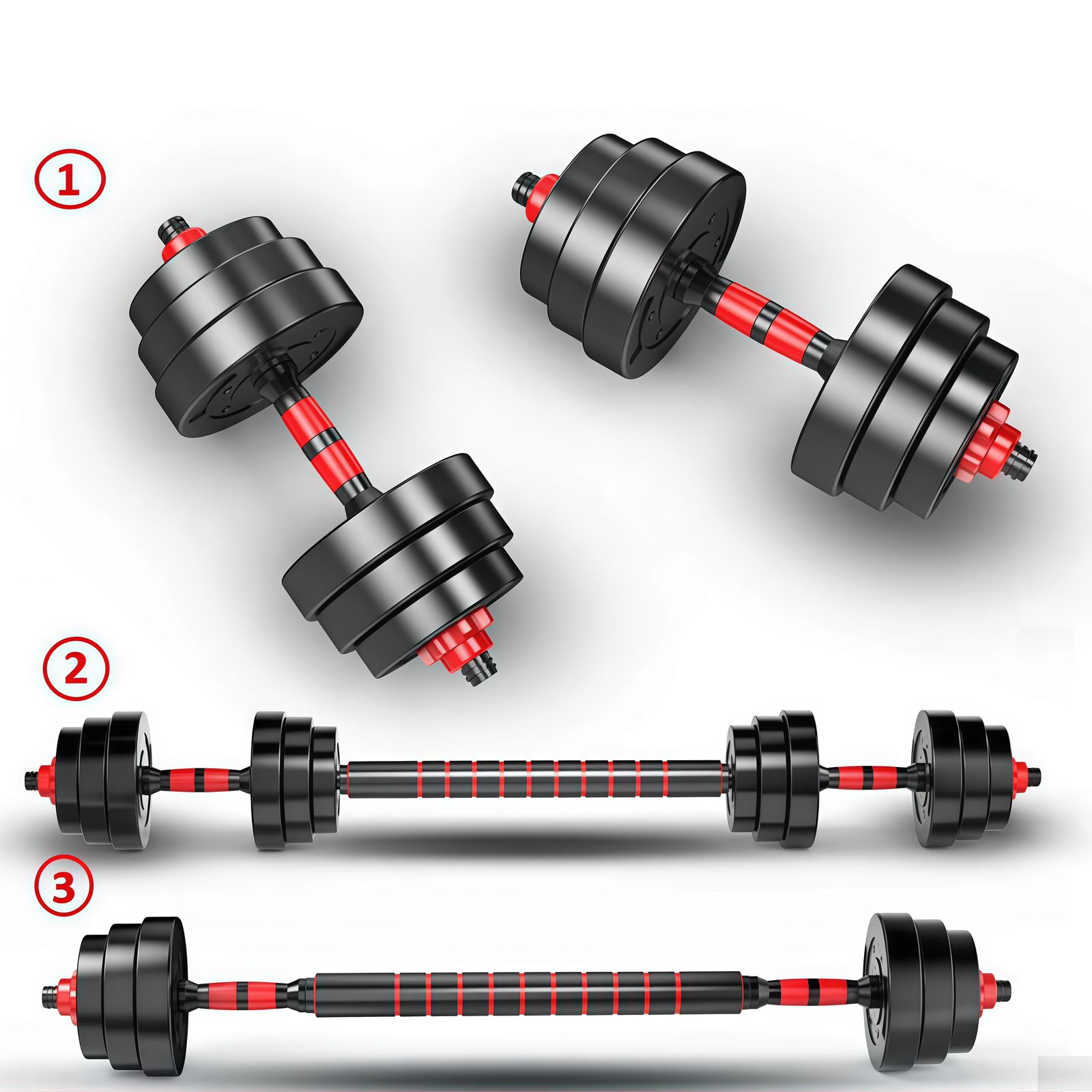 ✅ PESAS 2 EN 1 FÁCILES DE MONTAR: Gracias a la barra para mancuernas incluida, puedes convertir las mancuernas dumbbell en una barra de pesas para entrenamiento de pectorales y cuerpo completo:press banca, press militar, sentadillas y squats, peso muerto, zancadas con barra, etc. Muy fácil de conectar. Ideal para utilizar con una banca de pesas.