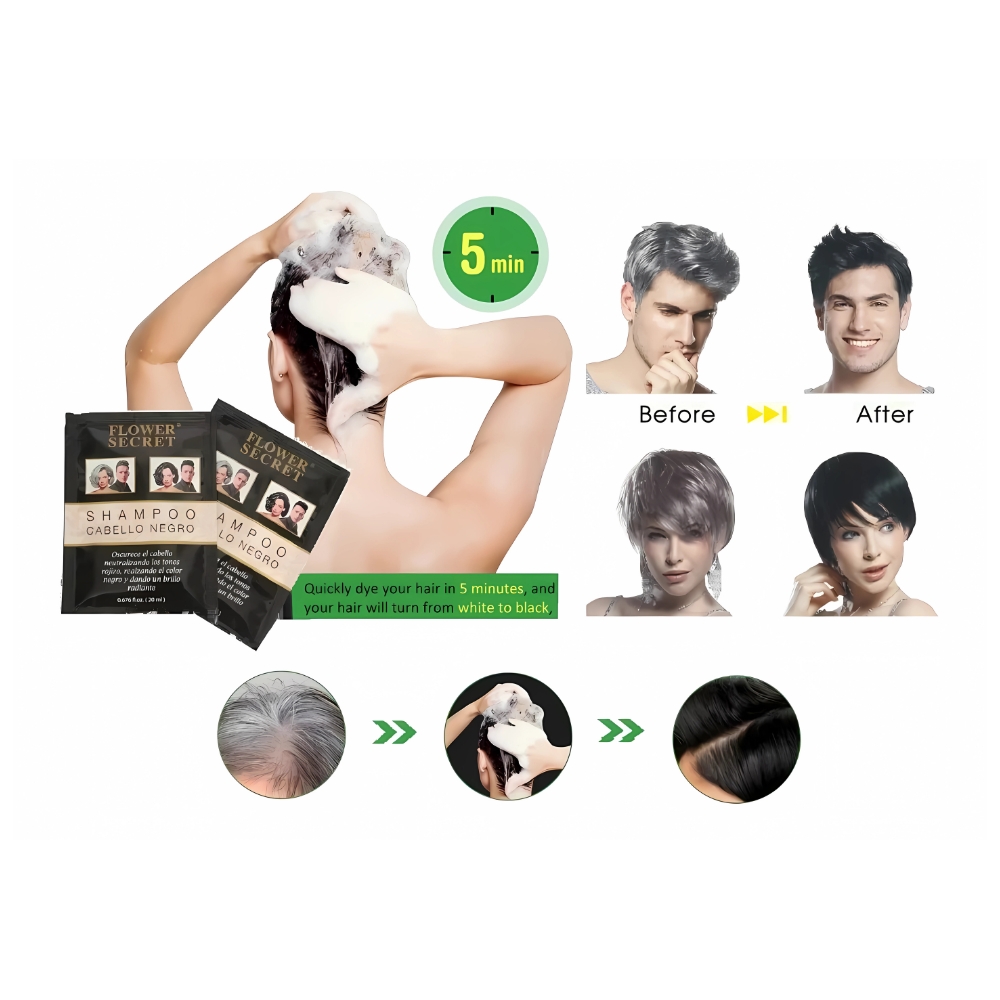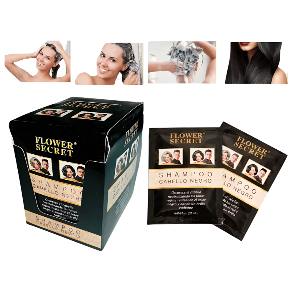 Con el Shampoo Cabello Negro de Flower Secret, podrás cubrir canas de manera efectiva y discreta, manteniendo un aspecto joven y saludable en tu cabello. Su versión en sachet facilita su aplicación y almacenamiento, siendo perfecto para llevar de viaje o para probar antes de adquirir el tamaño completo. ¡Descubre los beneficios de este shampoo y luce un cabello negro radiante y lleno de vida!