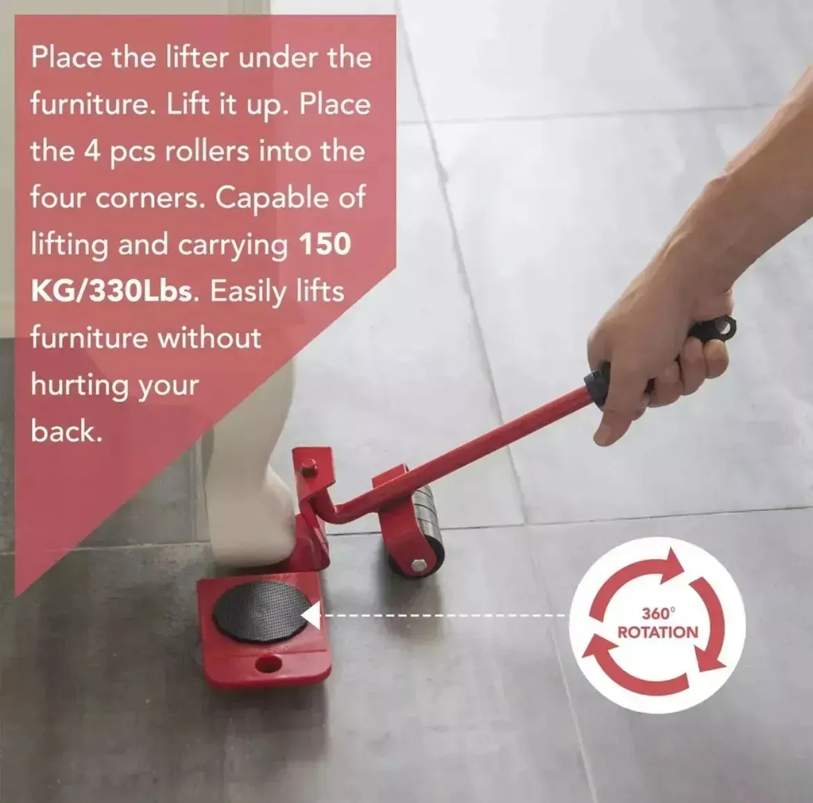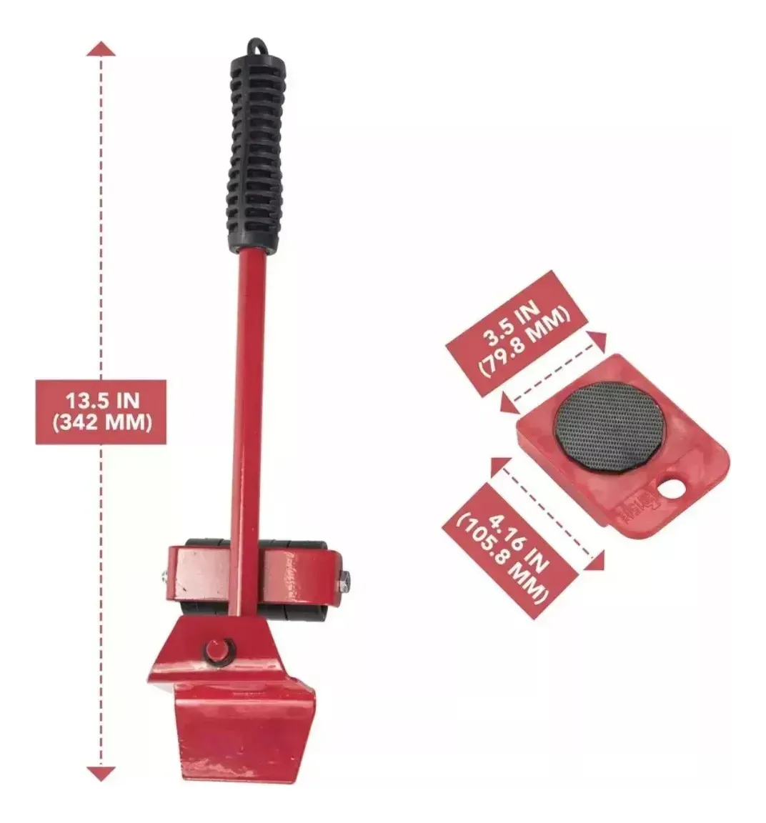 Diseño Robusto y Ajustable: Fabricado con hierro resistente, el sistema de transporte puede soportar muebles de hasta 150 kg. La barra de palanca cuenta con un cabezal ajustable de 180 grados, permitiéndote ajustar la altura para mayor comodidad y adaptabilidad durante el uso.
